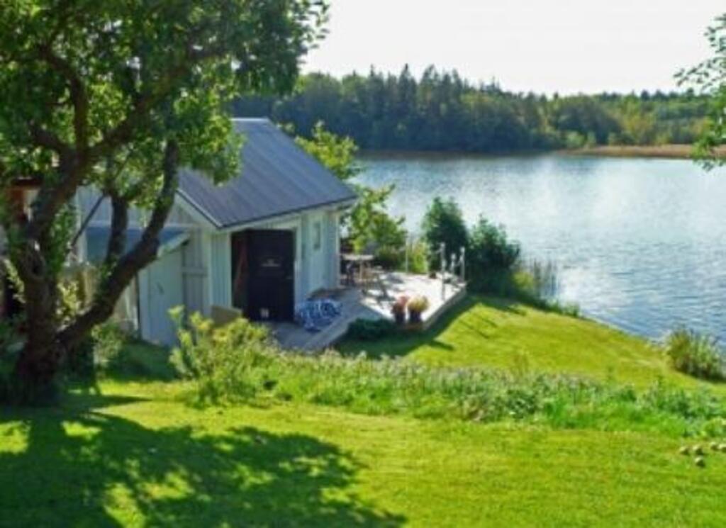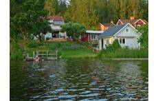 This is our house and our garden. The small house has a room for our guests. A picture of the view from our veranda. Our kitchen. This is me, Peter, and my wife Lena The last picture is our garden and the lake in the winter. We also have a rowing boat and a canoe for trips on the lake.