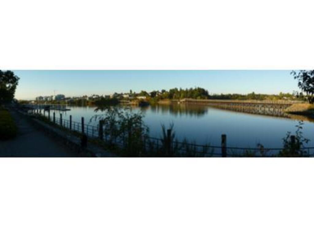 We are a family of three and live in a 4th floor condo (2 bedroom/den/3 bath - 1700 sq. ft / 158 m2) with an 800 sq. ft/75 m2 terrace that is within a 25 minute walk or 10 minute bike ride on city trails to Victoria's downtown.  The primary photo is of the Gorge waterway, just steps from our home.  (That's our cat in the bottom left)  The trestle bridge is part of the trail system that winds through the entire city region.