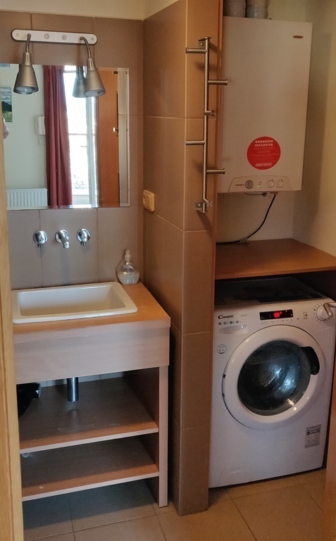 Our guest flat is located on the top (5th) floor of the renovated building built in 1920 (with an elevator). Furnished and kitchen-equipped 'IKEA' style, fridge, kitchen utensils, kettle, jug, toaster, microwave oven, washing machine, dishwasher, NESPRESSO coffee machine, TV/stereo, WiFi connection, towels and bed linens.