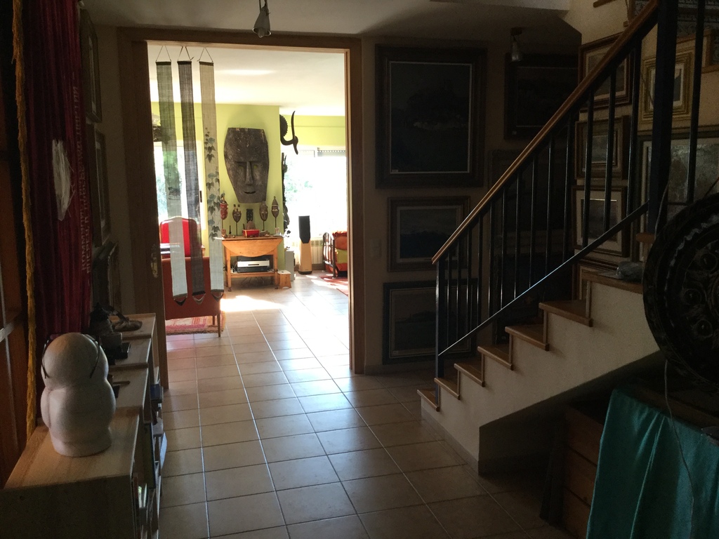 Our property is 2500 m2. Very private, barbecue and swimming pool. The house is i at the top of a hill so there is a nice view all around. The area is very quiet . Squirrels and birds come to our pond. And yet we are just 2 minutes by car from town center (ten minutes walking).