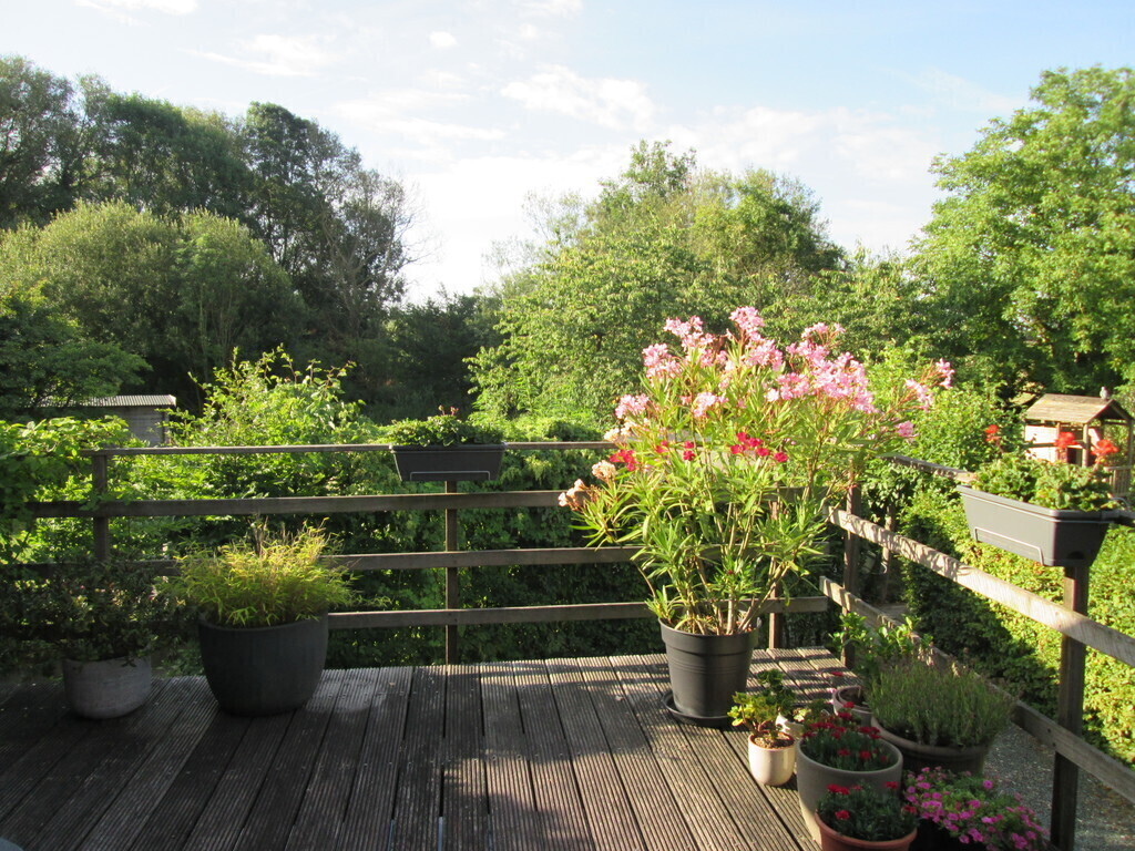 We live in a 1962 built house, in a quite street, on the countryside. We often see deer passing by in the winter en summertime! Our house has one floor with 4 bedrooms, 1 bathroom, a livingroom and kitchen. On garden level, over the full length of the house there is a garage, and a large space with billiard table and table tennis table. There are 3 terraces and a big garden.