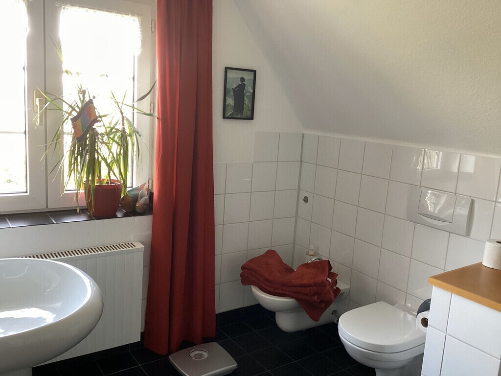 Our house is situated in the gently hilly rural outskirt of the ancient university city of Aachen, with 250 000 inhabitants. All around the house, you’ll find a huge, lush garden with an elaborate composition of flowers, bushes, old and shady fruit trees, a small pond with water lilies and a wide lawn offering picturesque sitting spots and hidden deck chairs for private sun bathing. A small green house, vegetable patch, as well as herb and fruit garden are ready for seasonal harvesting.