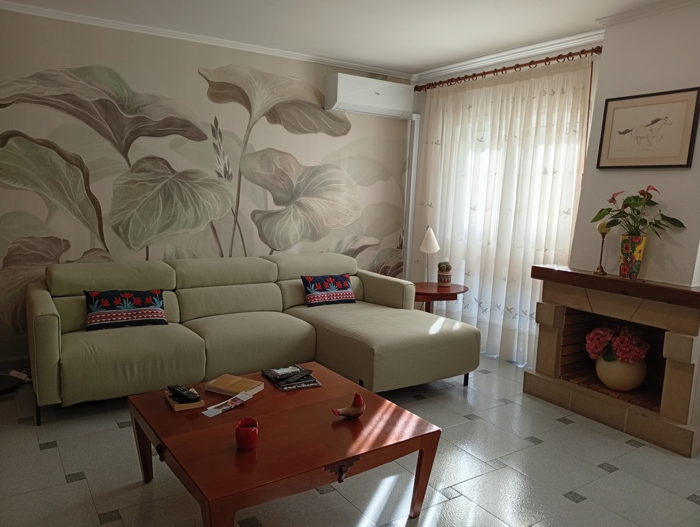 The house is a quited three storeyed and centrally located in the village, with all confort you can wish. On the ground floor, there is a big car-park with play room and garden. On the first floor, there is a big dinning-living room, a bathroom, a big and comfortable kitchen, and a little store room. On the top floor there are three bedrooms, a study room, a big bathroom and a terrace.