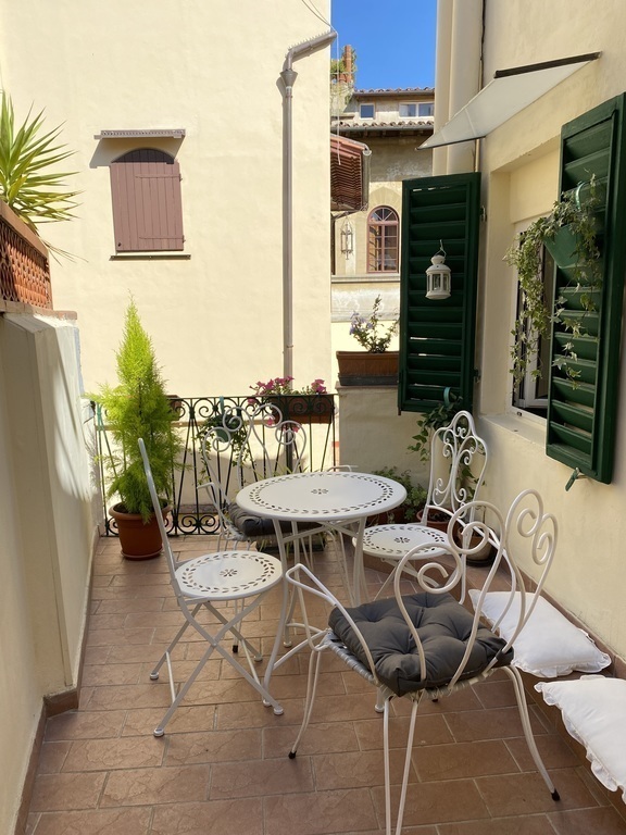Apartment in the heart of Florence in an ancient building with fragments of frescoes, recently renovated. It is located behind Piazza della Signoria, a 2-minute walk from Ponte Vecchio and the Uffizi Gallery and 5 minutes from the Duomo. On the third and top floor without a lift, after 54 steps, a lovely terrace awaits you, excellent for breakfast, lunch and dinner, which overlooks the rooftops of Florence. Relax in this centrally located quiet space.