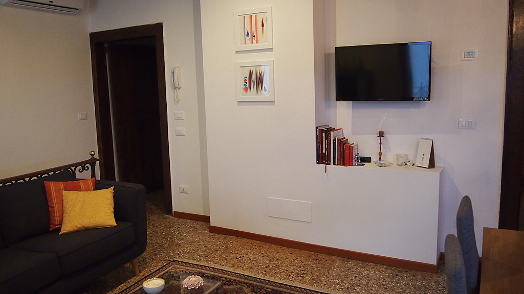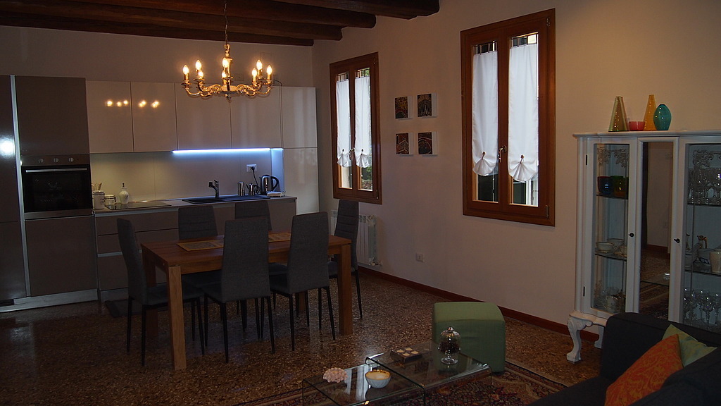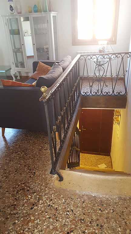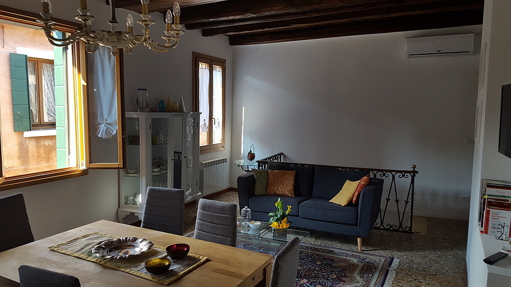 The flat is located in Giudecca Island, the biggest island of the Venetian lagoon. It is a newly restored two-storey house which dates back to the end of the 1700s. It has separate access which is located in a sunny alley highly illuminated by a public lamp post right above the entrance.