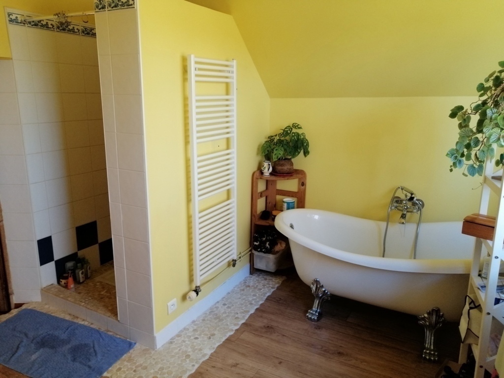 Home : We have been living in our farmhouse since 2019. Old farmhouse completely renovated with outbuildings, it has a spacious living space with 3 bedrooms (on the 1st floor, 1 bedroom with double bed and 1 child's bedroom with single bed and on the second floor, 1 bedroom with double bed) and 1 bedroom/office on the ground floor (single bed), 1 large bathroom with wc on the 1st floor, 1 wc (dry toilet) on the ground floor, 1 living room with mezzanine and 1 dining room on the ground floor, 1 equipped kitchen (without microwave) and 1 scullery on the ground floor. We also have some childcare equipment available, including a travel cot. We don't have a TV, just a screen to watch movies, but what you need to listen to good music! Our house is not "High-tech" but there is everything you need to live well there! Fans of board games, you will find a wide choice at home as well as bicycles, games for children, a trampoline outside (during the summer) and a ping-pong table. We also have all the necessary equipment to try handfishing in a reasoned and sustainable way. We can tell you about this activity if you want to try.