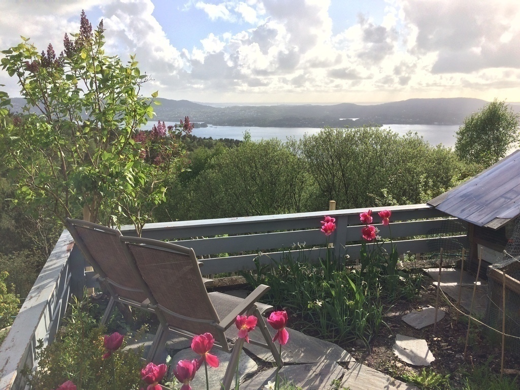 Home and garden at the end of quiet street, surrounded by nature and with a beautiful view to the fjord and the North Sea.