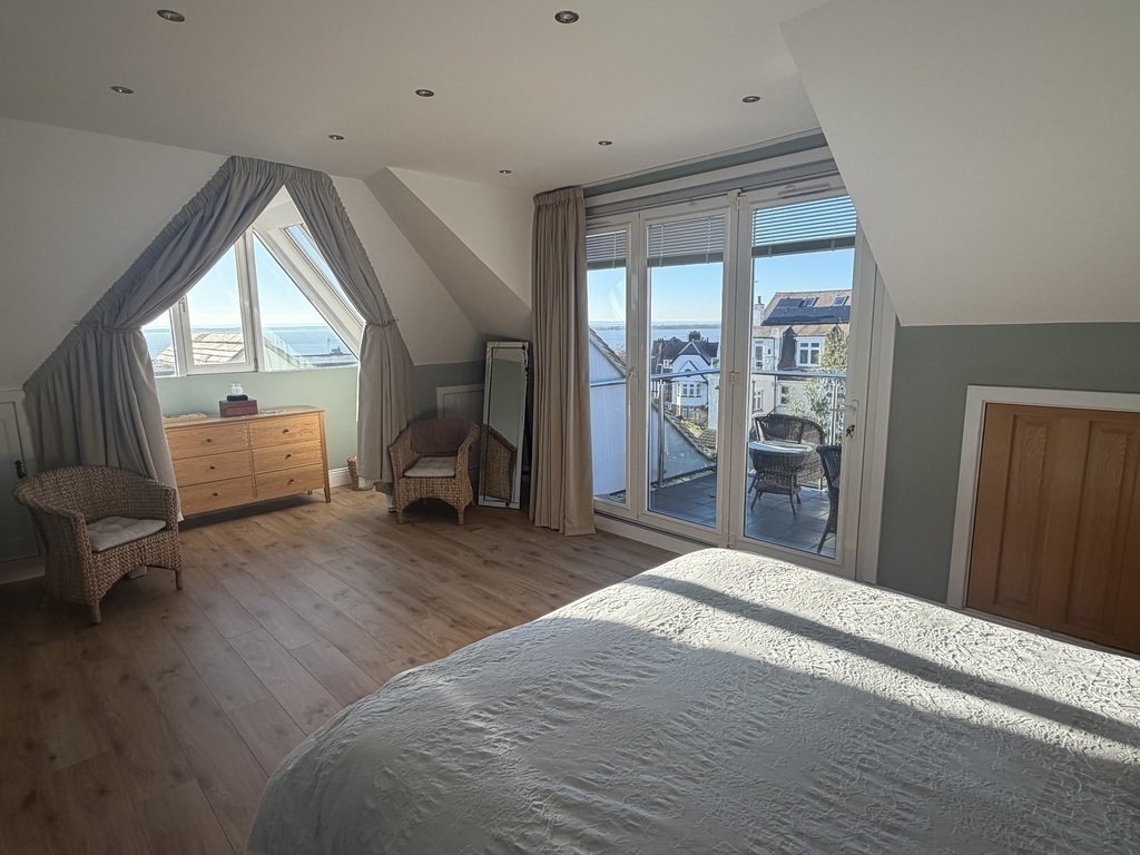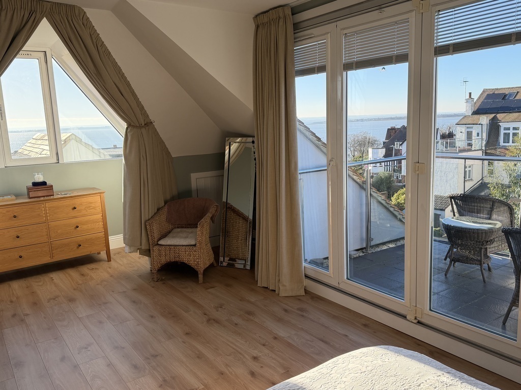 Our home is comfortable and spacious with sea views from many of the rooms. We have a large kitchen/family area and a lounge on the ground floor. The next floor up has 2 large bedrooms (each with a king size bed), a shower room with basin and WC, and a larger family bathroom with bath and separate shower cubicle. The top floor has recently (2025) been converted to a master bedroom suite. This consists of a large bedroom area with super king bed and panoramic views of the tidal Thames Estuary. There’s also a balcony to make the best of the spectacular views. Up here there’s also a dressing room area, en suite shower/WC and an cosy TV snug with 65” TV with all streaming services.