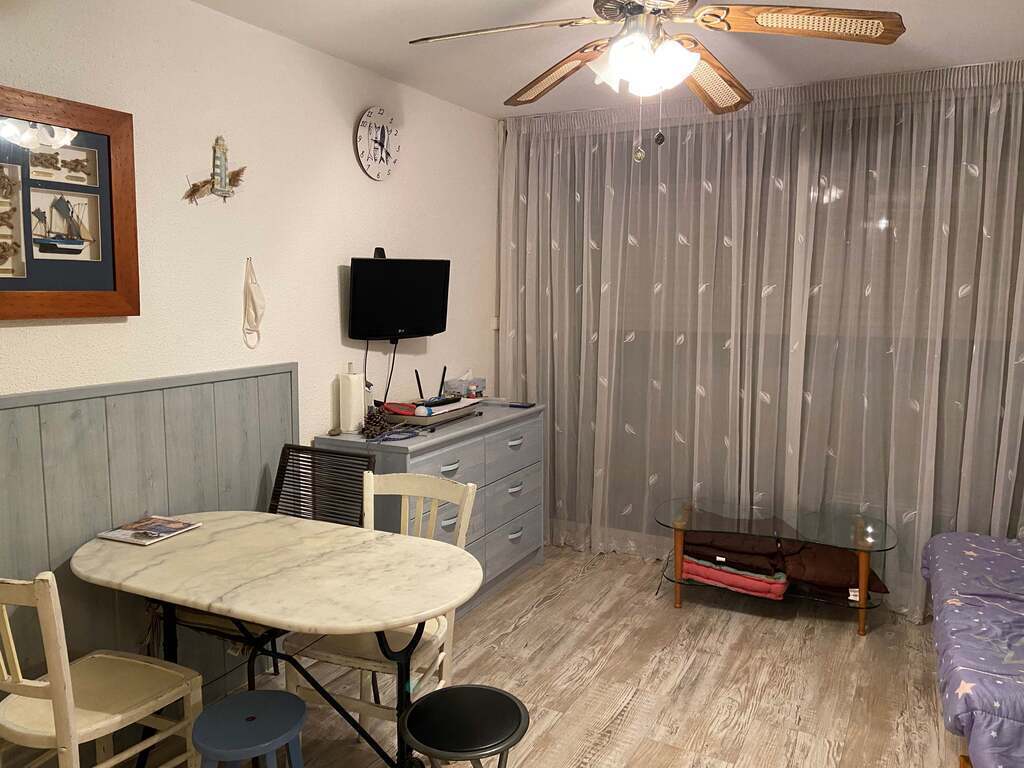 Dans l'espace salon, un canapé BZ (convertible en lit 140x190), une table basse et une bibliothèque, une télé, il y a le wifi dans la résidence mais il ne fonctionne pas très bien.