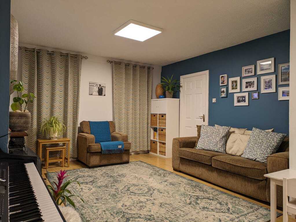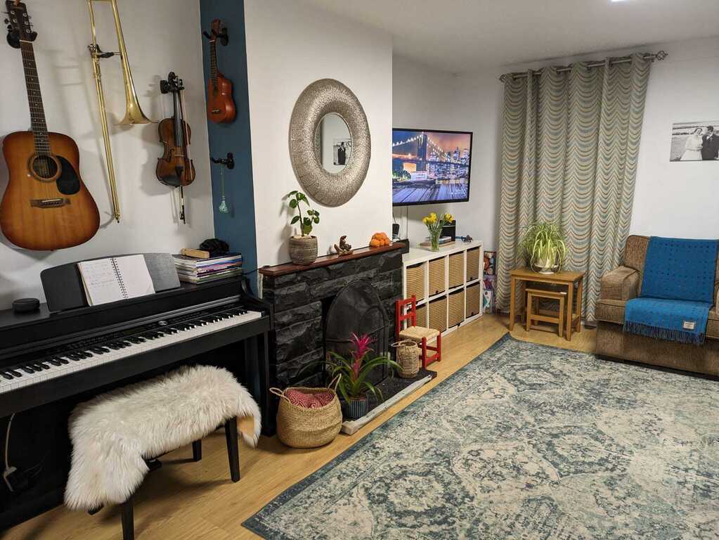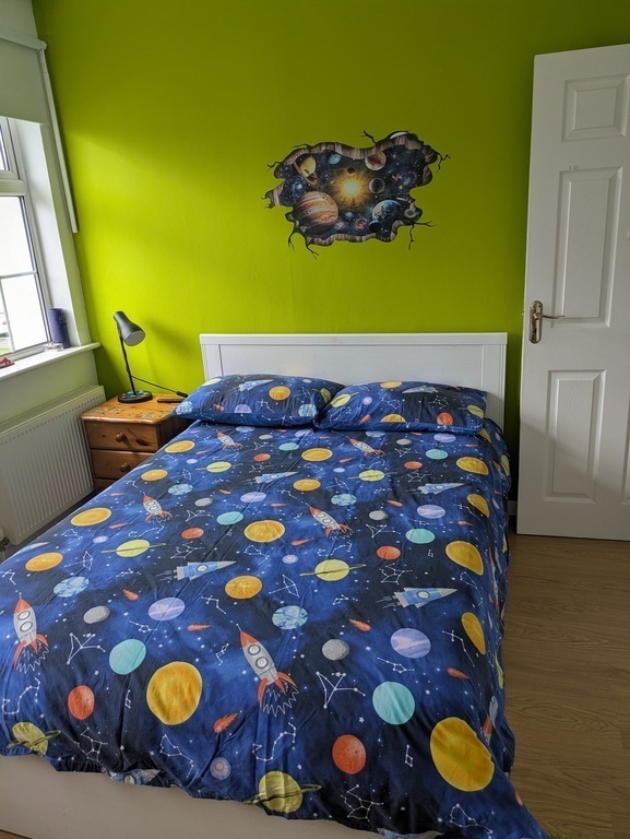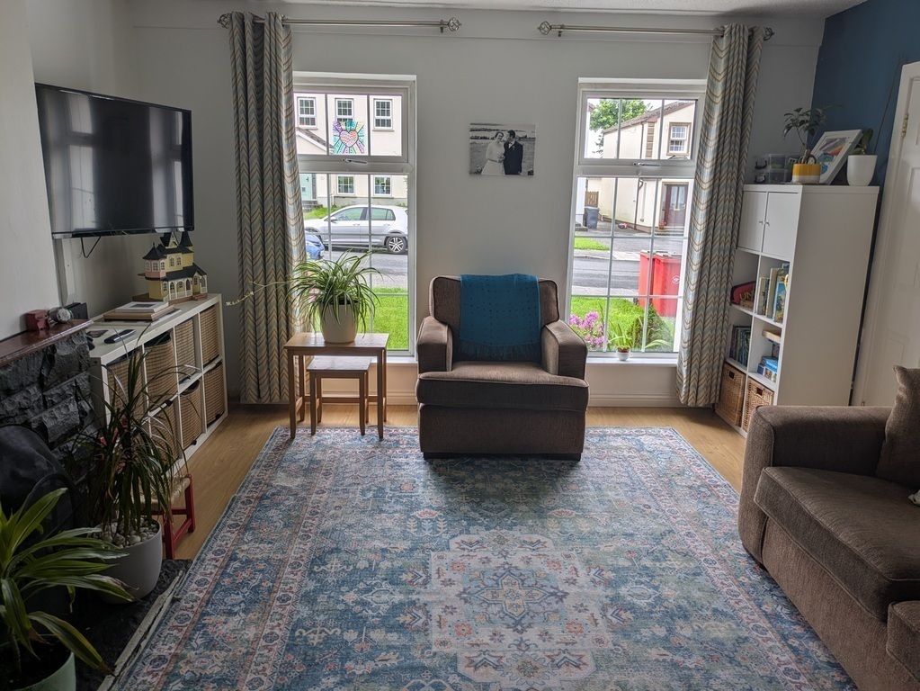 We live in a quiet suburb, 15 minutes walk from Galway city centre. There are lots of families around, and there is a bus to the city centre every 5 minutes. The house is detached, with a private garden. Great in summertime, for a barbecue, or just for sitting out. There is a lovely park with a kids playground behind our house. There are shops, cinema, restaurants within a 5 min walk from the house.