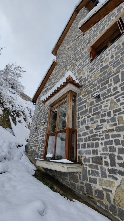 Construida con piedra y madera de la zona, la casa se integra perfectamente en el paisaje montañoso. Desde sus balcones llenos de flores y su amplia terraza, podrás disfrutar de unas vistas impresionantes de los picos y bosques que la rodean.